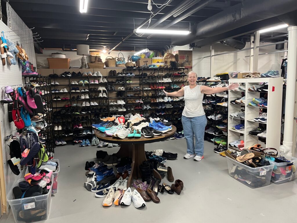 A name is a powerful thing. In June 2025, we named our “boutique” area in honor of Jamie Dycus, a guest who has spent countless hours keeping this space in our lower level organized and running smoothly for over three years. When Jamie moves from our home, new volunteers will take over her duties – but her legacy and story will remain to inspire those who follow.